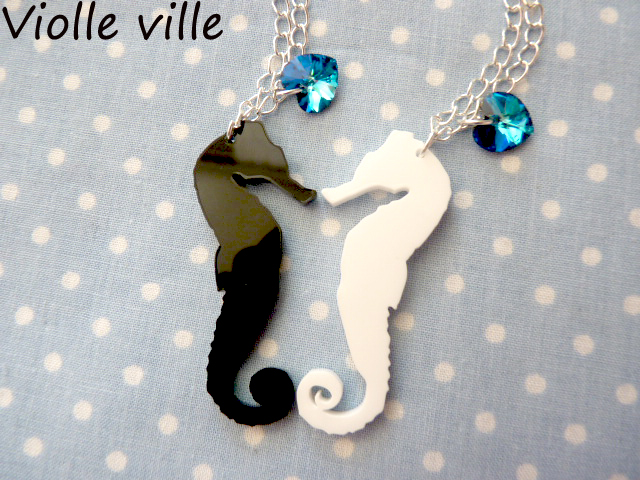 Cute and beautiful sea horse, laser cut, with blue Swarovski heart